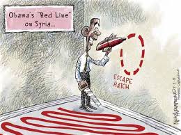 Obama claims he did not set a RED LINE on Syria - "the world did" (CARTOONS)